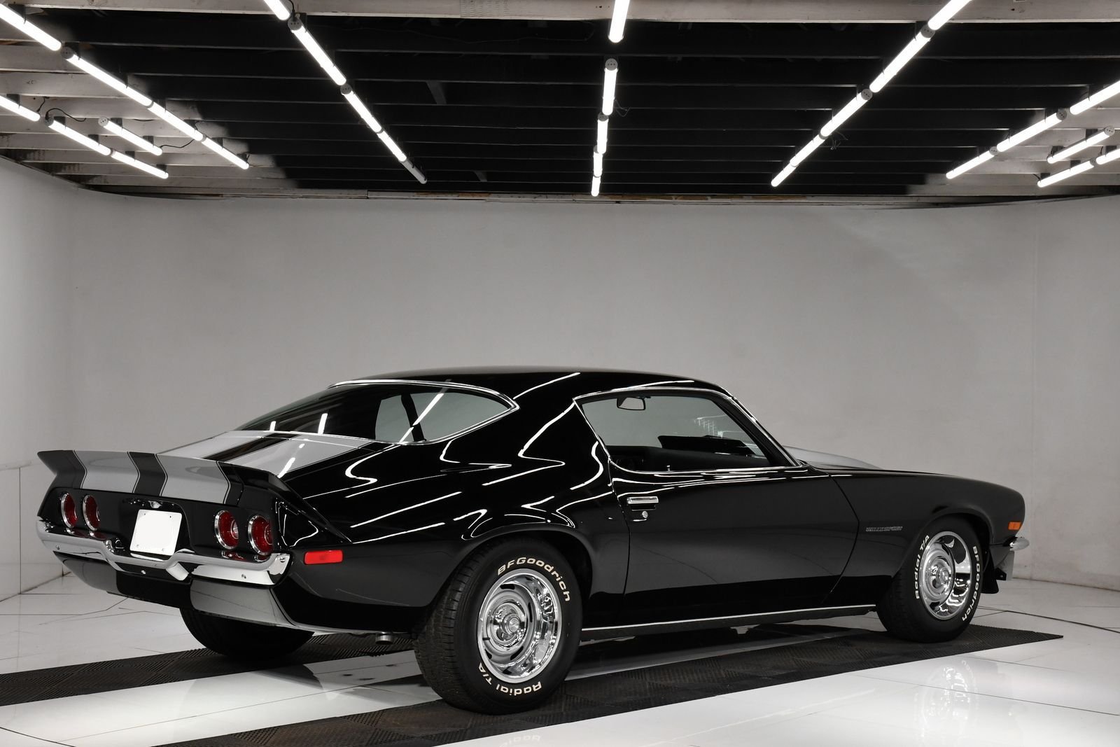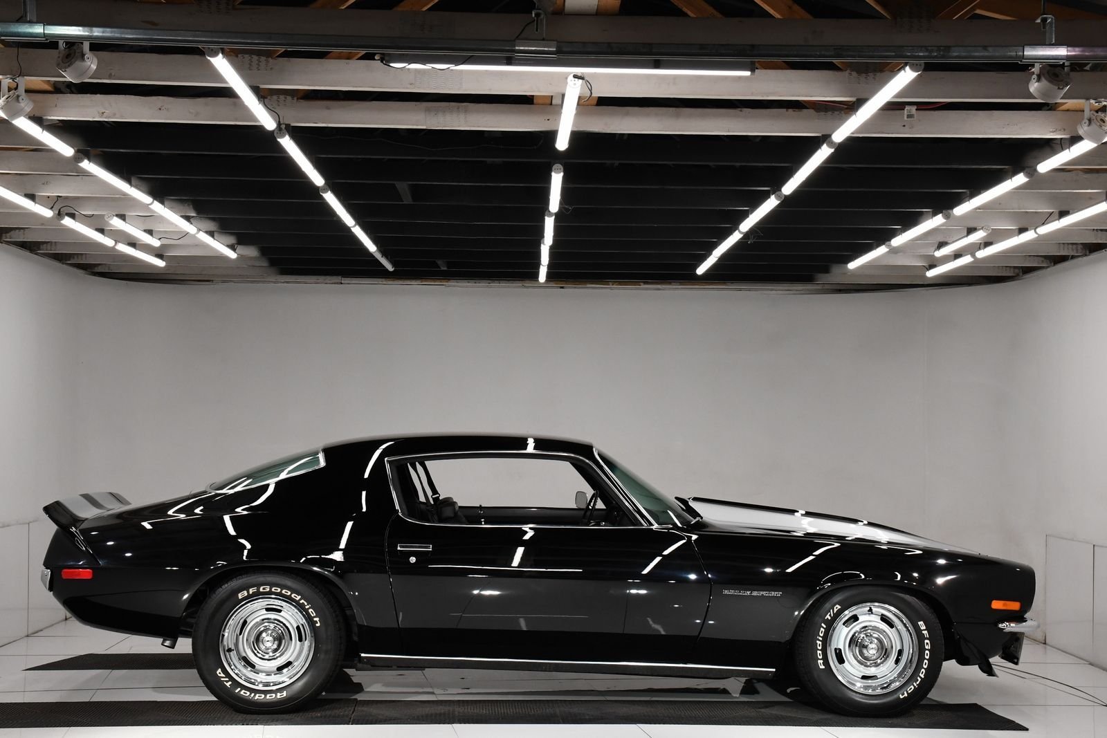 Deep black paint laid out like glass; silver SS stripes are smooth to the touch