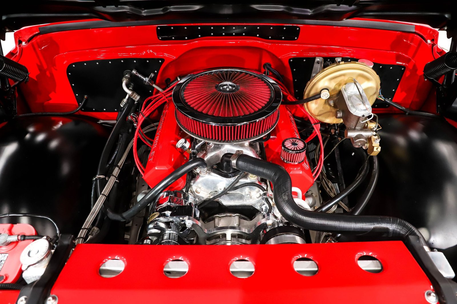 Engine bay finished in gloss red with custom panels and radiator cover – detailed to show quality
